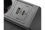 GTV-AE-GMBAS3S2U-20 - Nábytková zásuvka Basco, 3 x zásuvka Schuko, USB A+C, kabel 1,5 m, černá s montáží