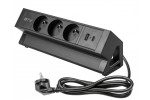 GTV-AE-GMBAS3U2U-20 - Nábytková zásuvka Basco, 3 x zásuvka s uzemněním, USB A+C, kabel 1,5 m, černá s montáží