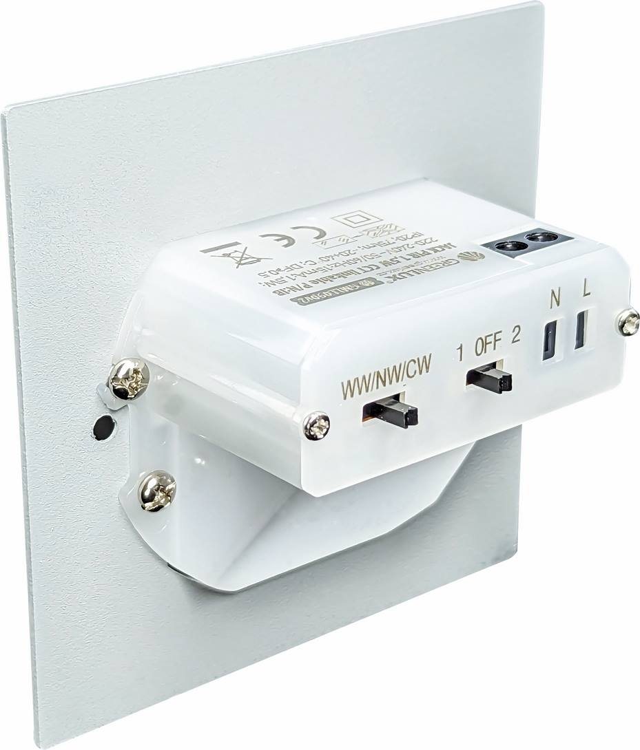Prepínače umiestnené na vstavanej časti svietidla umožňujú nastavenie teploty svetla a možnosť vytvoriť skupinu svietidiel, ktoré sa majú spínať spoločne.