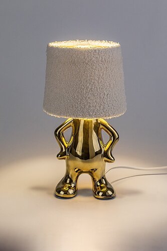 Štýlové lampičky vyrobené z keramiky a textilu. Keramická základňa je v štýle postavičky, klobúk tienidla je v imitácii kože z ovce. Skvele sa hodí do moderných interiérov aj detských či študentských izieb. |
