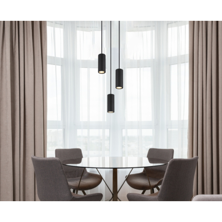 | Štýlové závesné svietidlá vyrobené z kovu a hliníka v matnej čiernej farbe. Telo svietidla je kovové a tienidlo je hliníkové. So závitom GU10. Tieto moderné svietidlá je možné doplniť o šikovnú LED žiarovku a pomocou smartfónu meniť farbu alebo teplotu svietenia, stmievať ich a navodiť tak príjemnú atmosféru v interiéri. | |
