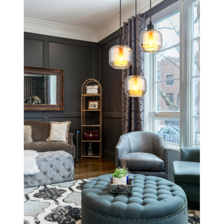 Elegantné svietidlá Xia sú vyrobené z kovu v matnej čiernej farbe so sklenenými tienidlami, kde sa kombinuje dymová farba s bielou. Svietidlá sa dodávajú bez žiaroviek. Závit E27. |