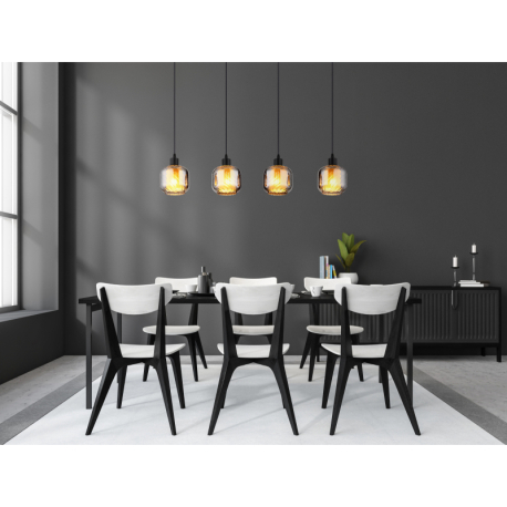 Elegantné svietidlá Xia sú vyrobené z kovu v matnej čiernej farbe so sklenenými tienidlami, kde sa kombinuje dymová farba s bielou. Svietidlá sa dodávajú bez žiaroviek. Závit E27. |