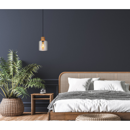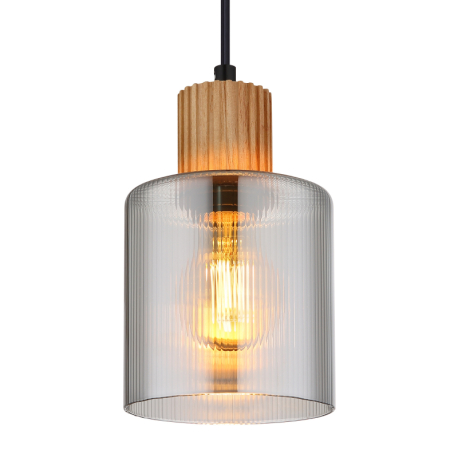 | Moderné svietidlá vyrobené z kovu v matnej čiernej farbe a so sklenenými tienidlami v dymovej farbe doplnených o drevený, hnedý prvok. Skvele sa hodí do obývacích izieb, kuchýň, jedální i spální. Svietidlá sa dodávajú bez žiaroviek. So závitom E27. | |