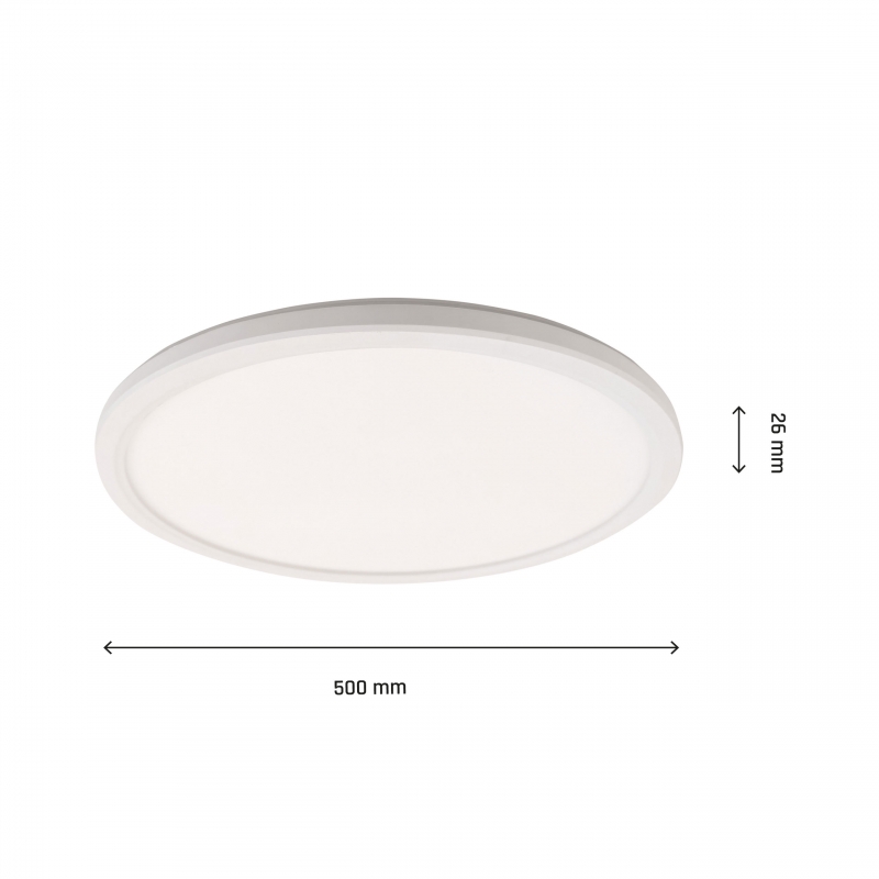 Moderné okrúhle svietidlo vyrobené z plastu v bielej farbe. Vďaka prepínaču je možné nastaviť teplotu svietenia na 3000K/4000K alebo 6000K. Má ochranu IP54, takže je vhodné aj na vonkajšie použitie. Svietidlo pod číslom 2 a 3 je možné dokúpením závesu vytvoriť elegantné závesné svietidlo.
