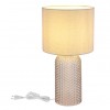 | Štýlová stolná lampička vyrobená zo skla a textilného tienidla. Sklenená noha svietidla je dekorovaná, čo jej dodáva zaujímavý vzhľad. Skvele sa hodí do obývacích izieb, spální i predsiení na dotvorenie príjemnej atmosféry. So závitom E27. Žiarovky nie sú súčasťou balenia. Dĺžka kábla 130 cm. | |
