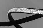 FONDI K-8236 je lampa, která plní nejen funkci praktického osvětlení, ale stává se také ústředním bodem výzdoby interiéru. Její tvar připomínající nápadnou pletenou stuhu v kombinaci s černým povrchem a jemnými dekorativními LED akcenty dodává celku moderní, loftový nádech. Je ideální volbou pro ty, kteří hledají netradiční designová řešení. Lampa se dokonale hodí do světlých, minimalistických interiérů, ale také krásně podtrhne eleganci temnějších glamour aranžmá. Můžete ji zavěsit nad stůl, do prostorného obývacího pokoje nebo do reprezentativní haly - kamkoli, kde chcete spojit styl a funkčnost. A pokud sníte o teplejším barevném akcentu, ve stejné sérii je k dispozici také verze ve zlaté barvě.