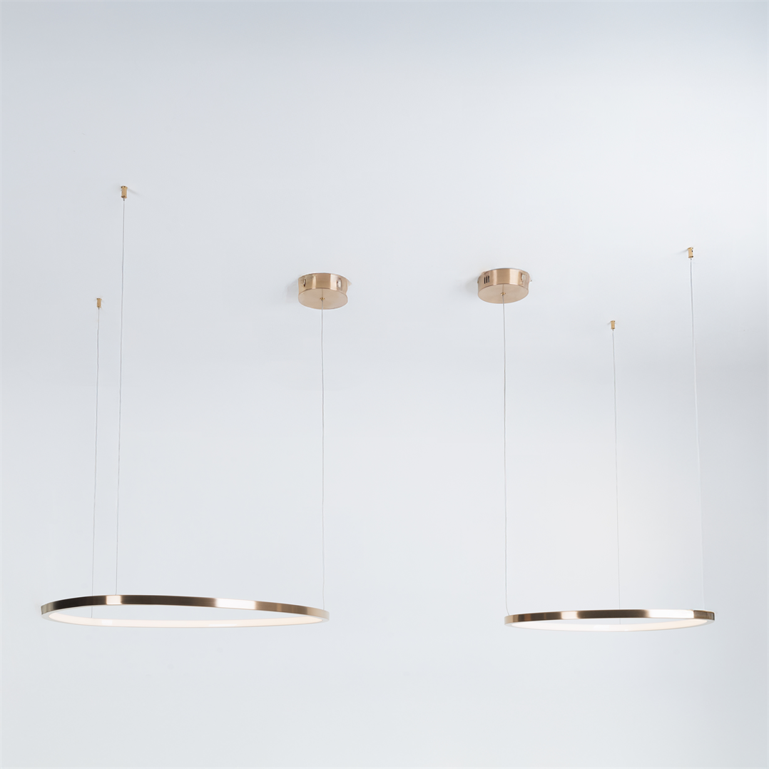 Příkon/výkon: 130W LED, 3966 LM 3000K V: max. 180 cm, Ø: Povrchová úprava/detailní úprava: kartáčovaná měď/kartáčované růžové zlato Materiál/materiál: kov,kov Svítidlo je součástí dodávky/LED je součástí dodávky. |