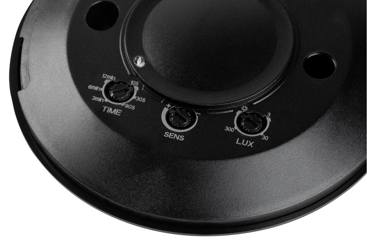 Senzor CR-3 MINI má detekční dosah až 8 metrů, což umožňuje detekci pohybu v celém 360stupňovém detekčním poli. Zařízení je napájeno napětím AC220-240V a navíc má tři funkce: identifikaci "LUX" ve dne a v noci, nastavení citlivosti "SENS" v rozsahu od 1 do 8 metrů, což umožňuje úpravu senzoru na různé velikosti místností; a zpoždění vypnutí "TIME" udržuje dobu osvětlení poté, co člověk opustí zorné pole senzoru, s možností nastavit čas od 10 sekund do 12 minut. Díky těmto funkcím je mikrovlnný senzor schopen přesně přizpůsobit svůj provoz měnícím se podmínkám prostředí a potřebám uživatele, zatímco černá barva zaručuje designérský a estetický prvek interiérů s černými nebo grafitovými povrchy.