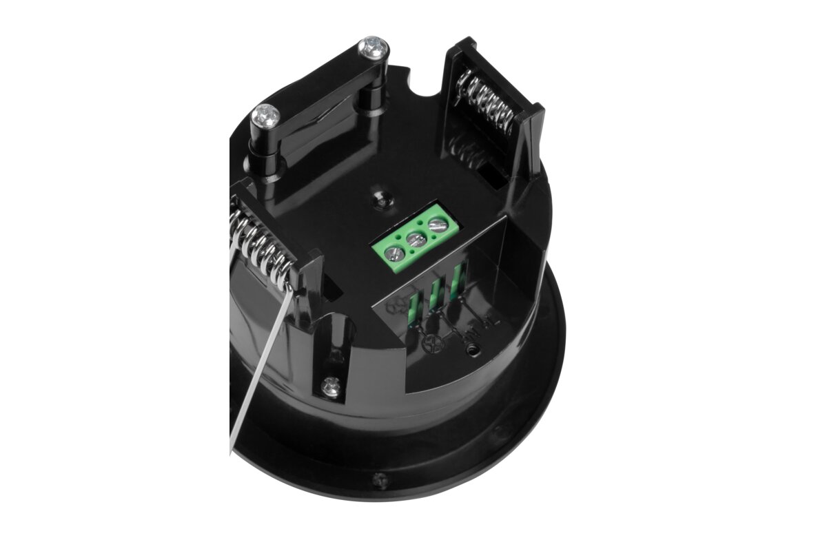 Pohybový senzor CM-5 je moderní zařízení využívající technologii vysokofrekvenčních elektromagnetických vln (5,8 GHz). Díky snadné instalaci do zavěšeného stropu a doporučené výšce instalace 1,5 až 3,5 metru je tento senzor ideálním řešením pro různé prostory. Černá barva umožňuje senzoru nenápadně splynout s temným uspořádáním industriálního, moderního interiéru. Maximální dosah detekce senzoru je kruh o průměru 16 metrů, což umožňuje efektivní monitorování prostředí. CM-5 automaticky upravuje svůj provoz podle světelných podmínek, nabízí nastavení "slunce" pro provoz bez ohledu na denní dobu a "3" pro aktivaci při světelných úrovních pod 3 LUX. Senzor také umožňuje upravit čas udržení světla při detekci pohybu, s možnostmi od 10 sekund do 12 minut, což umožňuje plnou úpravu podle individuálních potřeb uživatele.