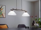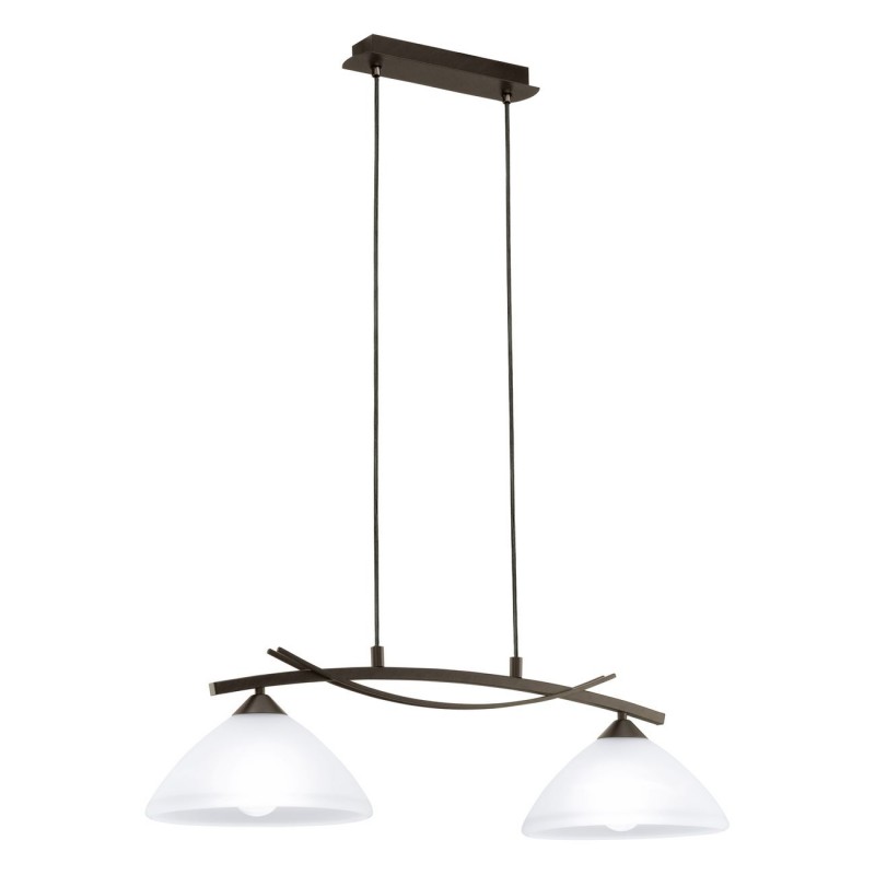 Závesné svietidlo vyrobené v klasickom štýle. Je vhodné nielen do kuchýň a jedální nad jedálenský stôl, ale aj do obývacích izieb. Je vyrobené z ocele v tmavo hnedej farbe a z bieleho alabastrového skla
