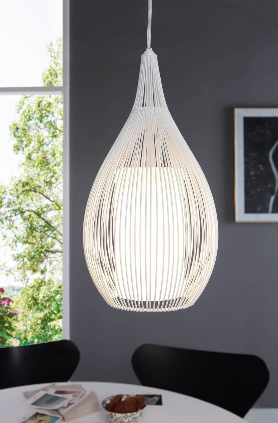 Závesné svietidlá Razoni sú vhodné do všetkých moderných interiérov. Hodí sa nielen do kuchýň a jedální, ale aj do obývacích izieb. Základňa je vyrobená z ocele a tienidlo má zaujímavý tvar kvapky z oceľových drôtov a vo vnútri kvapky je sklenený valec. Po rozsvietení vyzerá svietidlo veľmi efektne. |