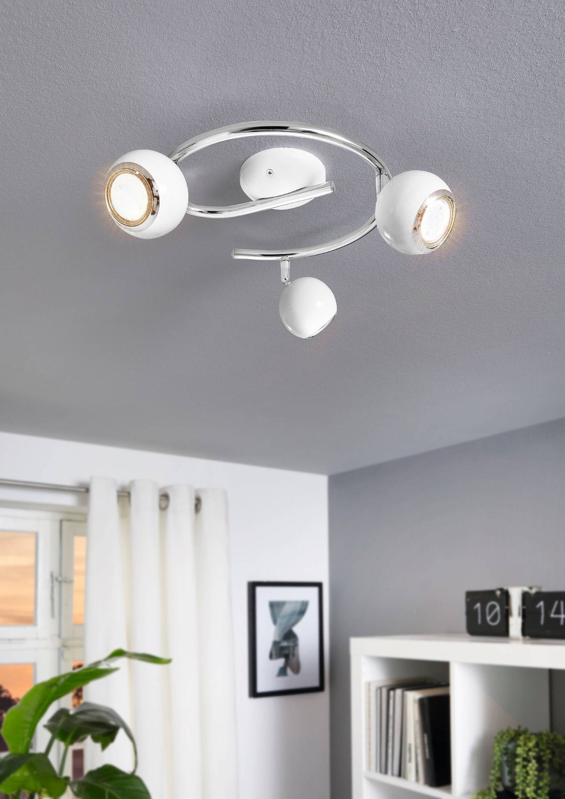 Súprava zaujímavých, bodových svietidiel vhodných do každého interiéru. Sú vyrobené z ocele v kombinácii bielej a chrómovej farby. Dodávajú sa vrátane žiaroviek. |
