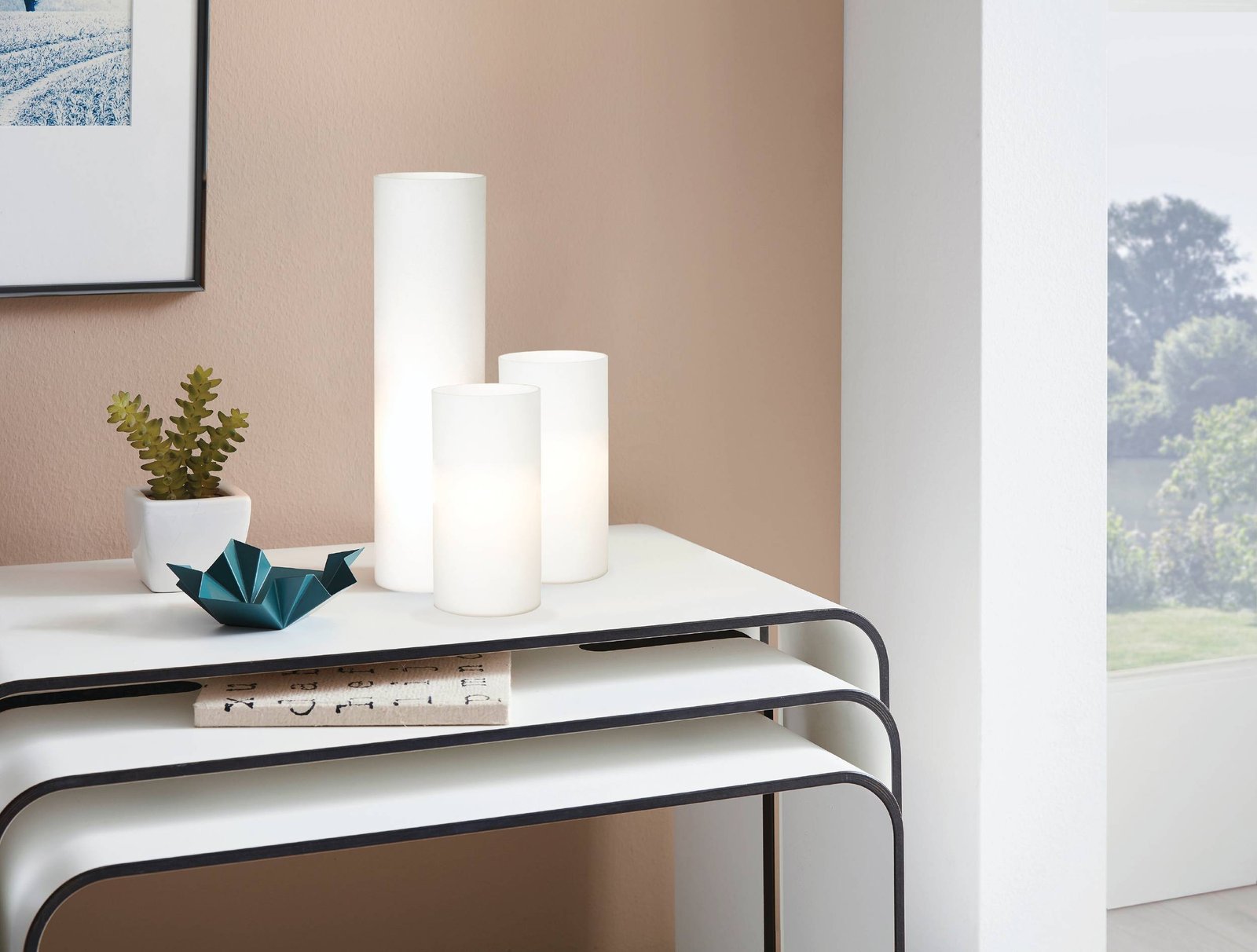 Jednoduché sklenené lampičky vhodné na komodu alebo nočný stolík na dotvorenie príjemnej atmosféry v interiéri. |