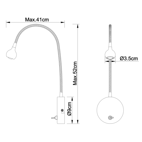GL-24109W Nástěnné svítidlo, kov chrom, kov nikl matný, akryl, transparentní napájecí kabel, flexi, vypínač, V:52cm, H:41cm, včetně 1xLED 3W 3,6V, 150lm, 3000K. - Serpent