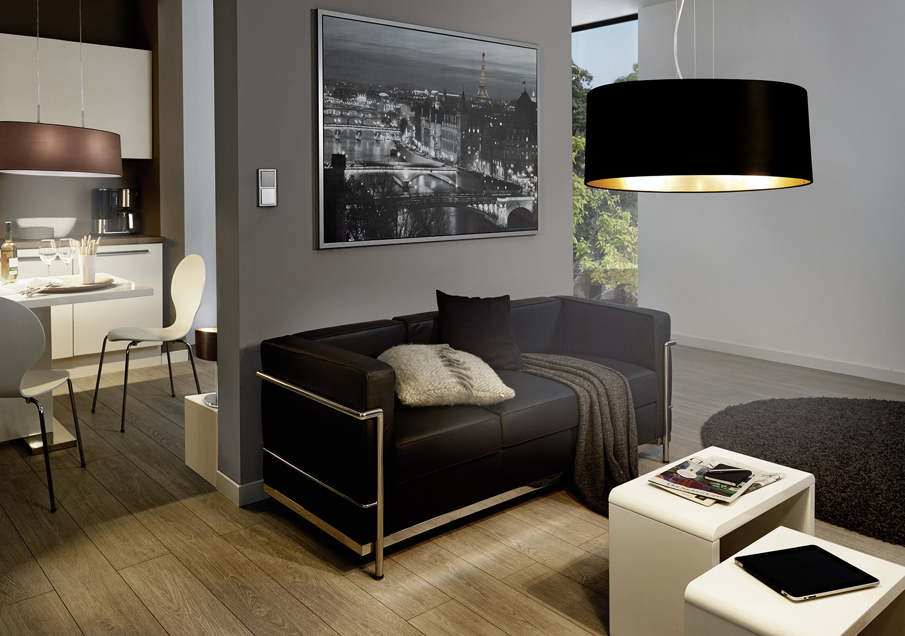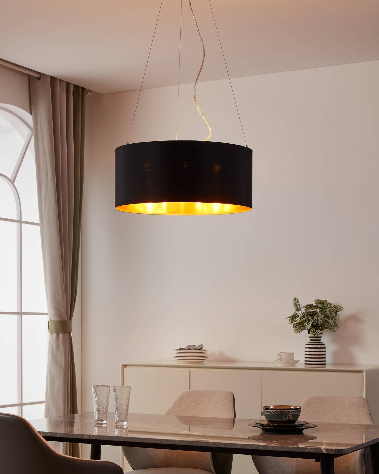 Maserlo sú svietidlá v modernom designe. Sú vyrobené z ocele vo farbe matný nikel a tienidlo je textilné, z vnútornej strany v zlatej farbe a z vonkajšej strany v čiernej farbe.