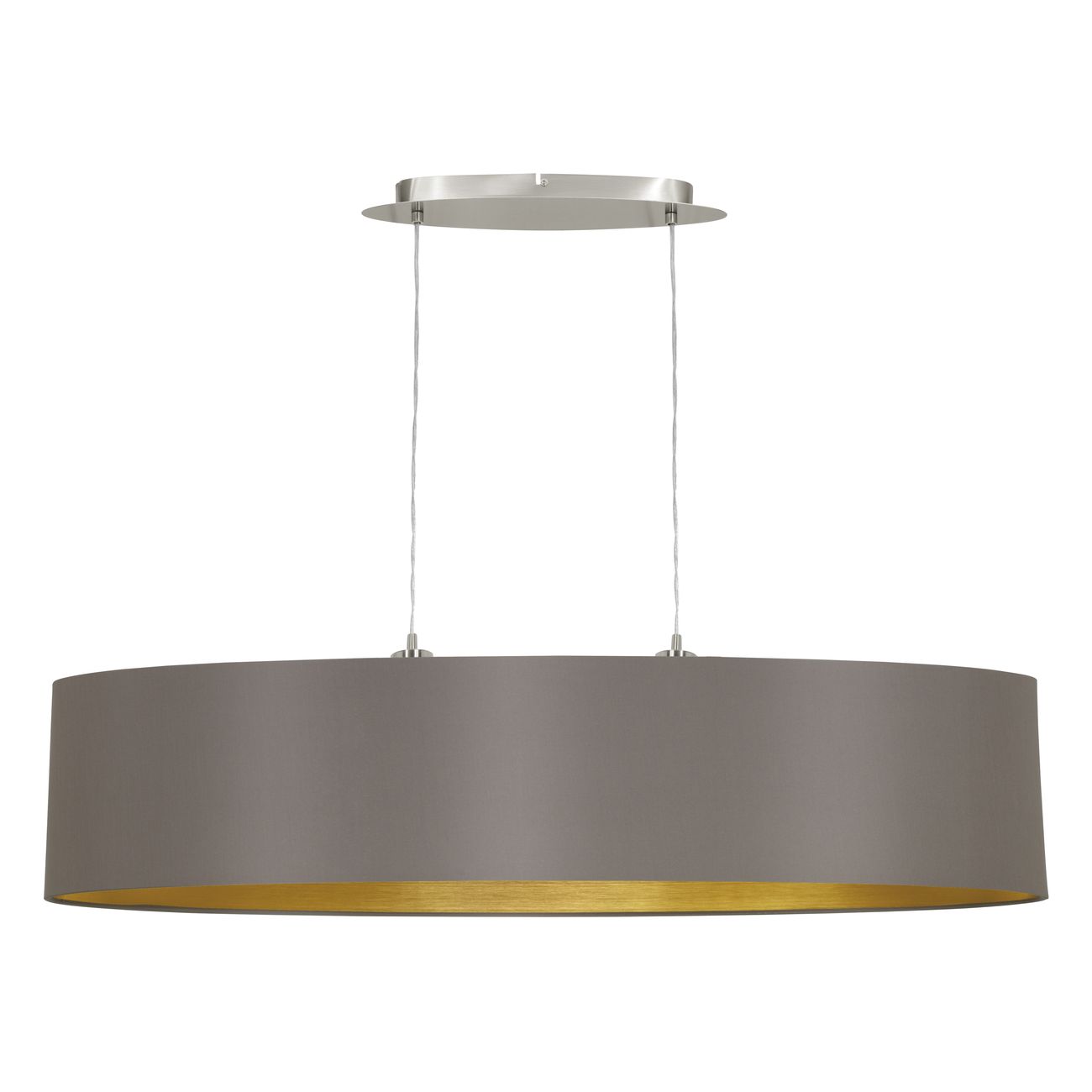 Moderné svietidlá vyrobené z ocele vo farbe matný nikel a tienidlá sú textilné vo farbe cappuccino a zlatá. Sú vhodné do všetkých obytných miestností vo vašom interiéri. Je možné ich osadiť chytrou LED žiarovkou a pomocou aplikácie v smartfóne je stmievať alebo meniť teplotu a farbu svietenia. |