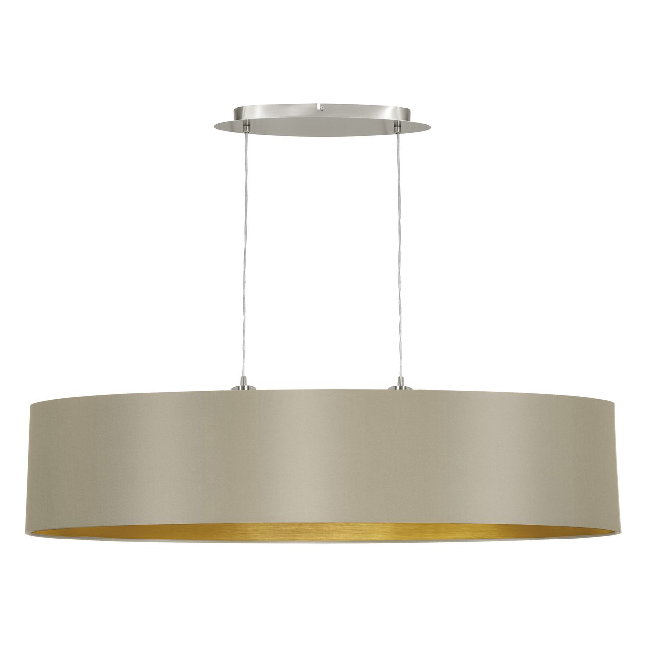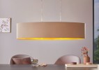 Moderné svietidlá vyrobené z ocele vo farbe matný nikel a tienidlá sú textilné vo farbe taupe a zlatá. Sú vhodné do všetkých obytných miestností vo vašom interiéri. Je možné ich osadiť chytrou LED žiarovkou a pomocou aplikácie v smartfóne je stmievať alebo meniť teplotu a farbu svietenia. |