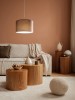 Moderná súprava svietidiel je vyrobená z kovu v matnej niklovej farbe a tienidlo je textilné v hnedo-antracitovej farbe. |
