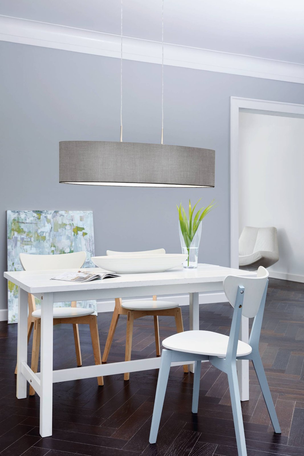 Súprava svietidiel Pasteri je vyrobená z ocele v matnej niklovej farbe a textilu v sivej farbe. Súprava sa skladá z lámp, lustrov a nástenných svietidiel, takže si môžete krásne vytvoriť kompletný interiér. |