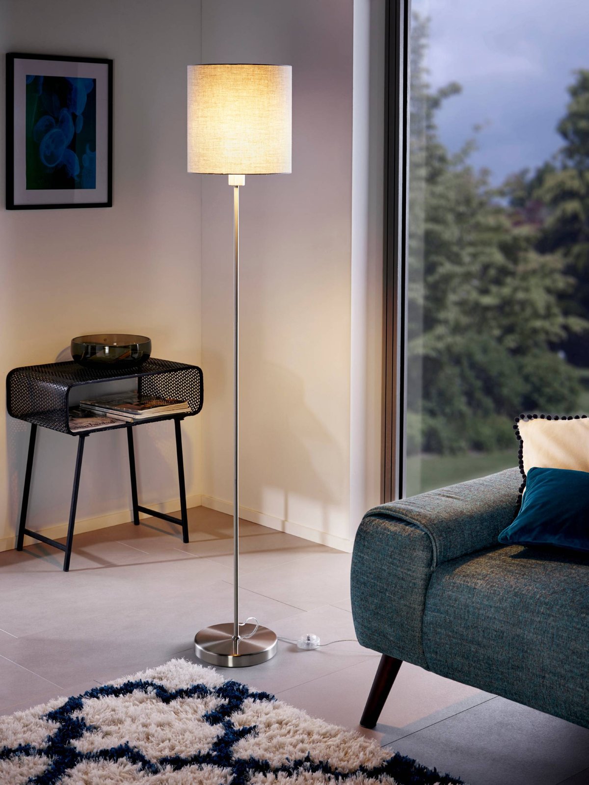 Súprava svietidiel Pasteri je vyrobená z ocele v matnej niklovej farbe a textilu v sivej farbe. Súprava sa skladá z lámp, lustrov a nástenných svietidiel, takže si môžete krásne vytvoriť kompletný interiér. |