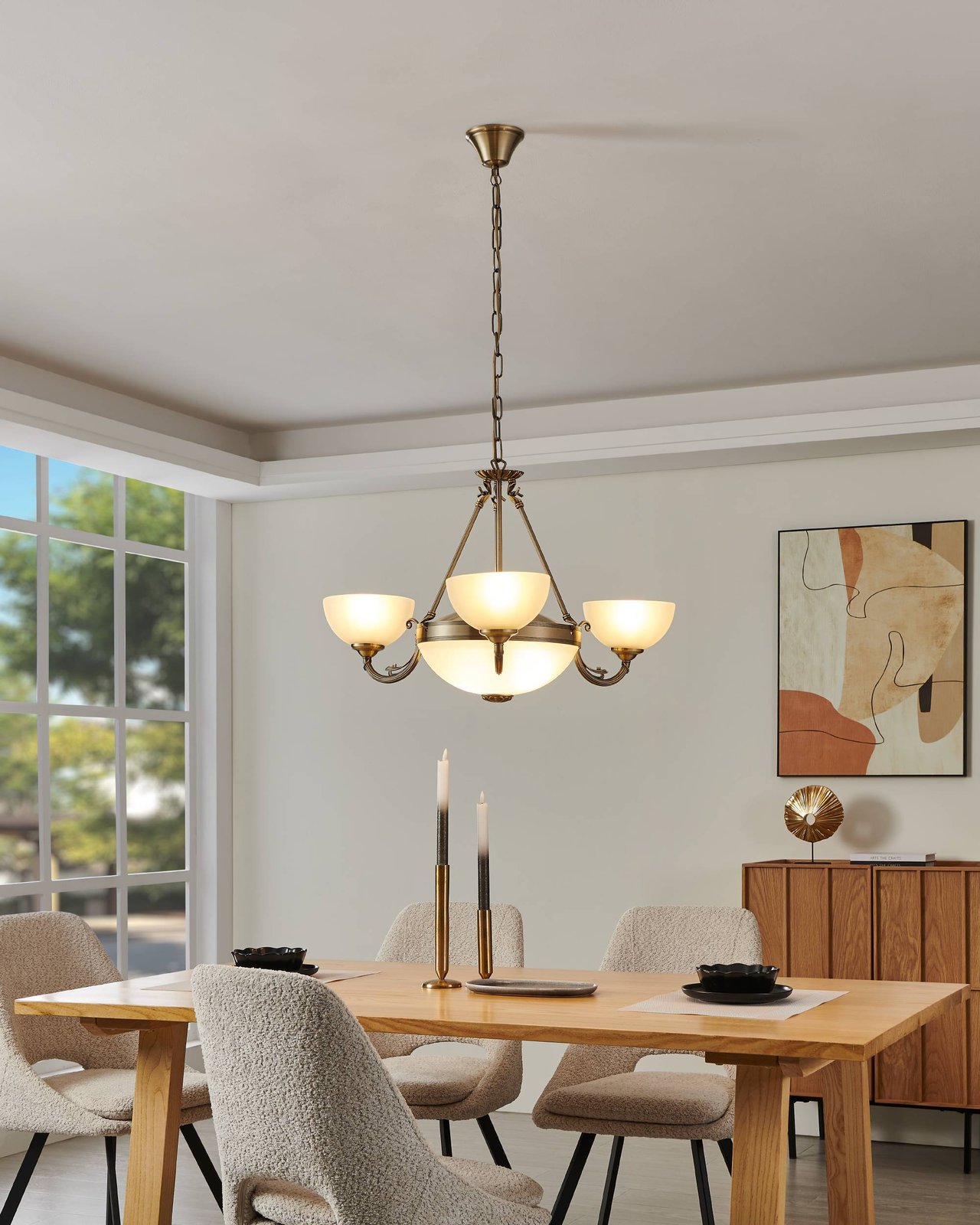 Svietidlá Savoy sú vyrobené v klasickom štýle, z kovu bronzovej farby a z bieleho skla. Hodí sa do obývacích izieb, spální, kuchýň, jedální, chodieb i predsiení. |