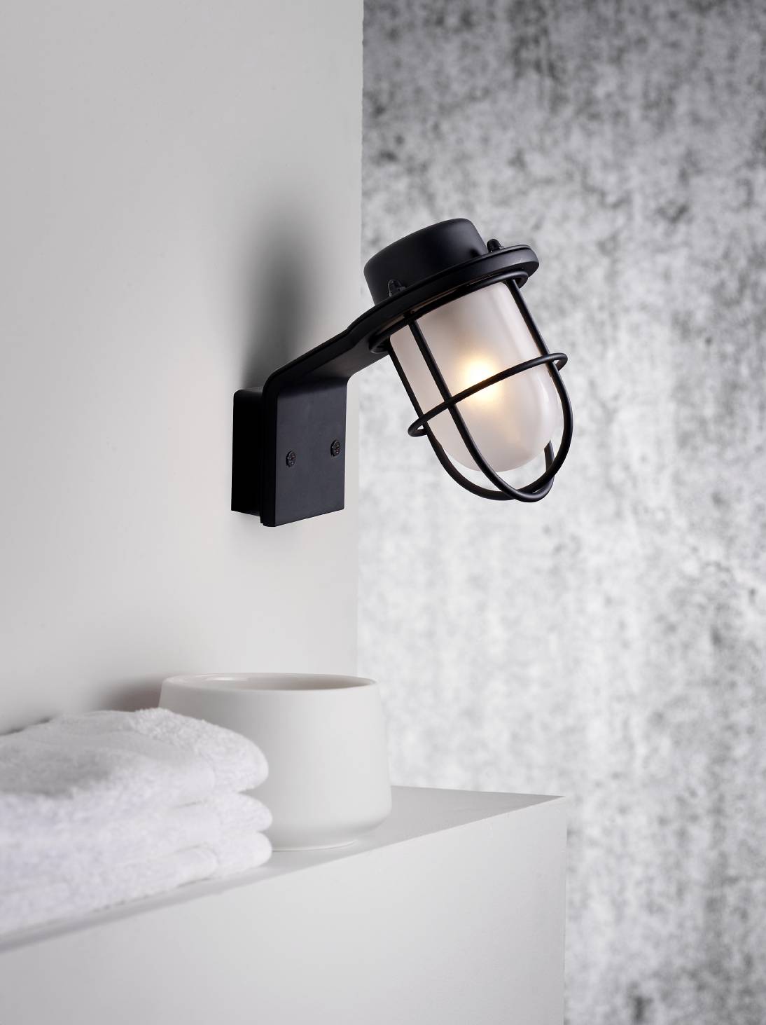 | Nástěnné svítidlo Nordlux Marina s drsným skandinávským designem vhodné do koupelny ve dvou barevných provedeních | |