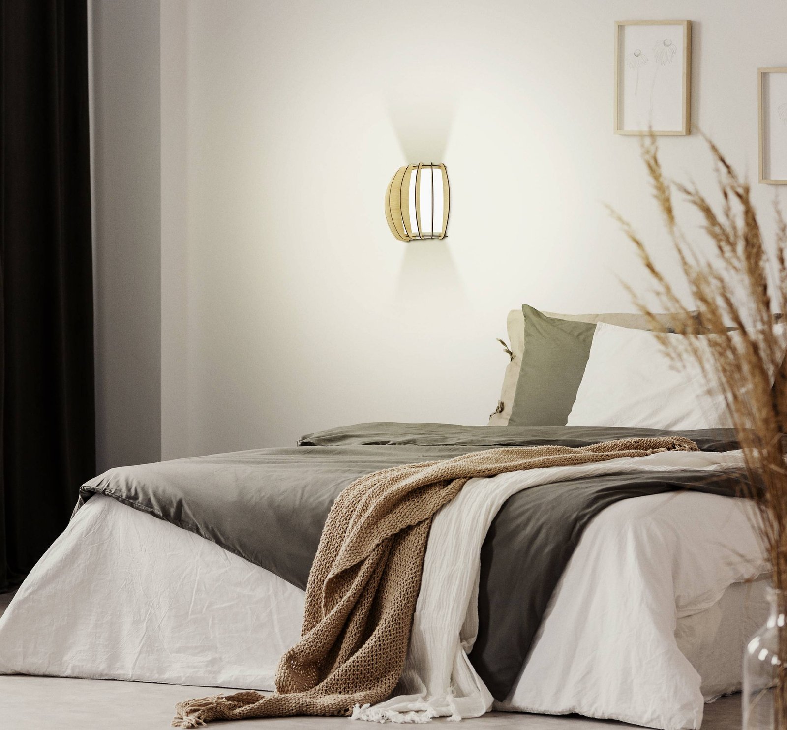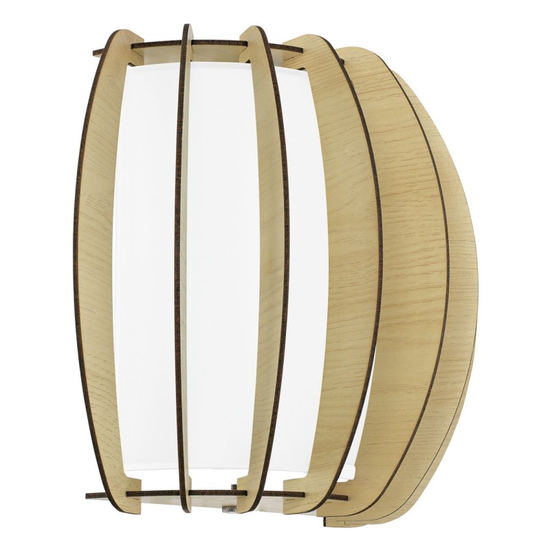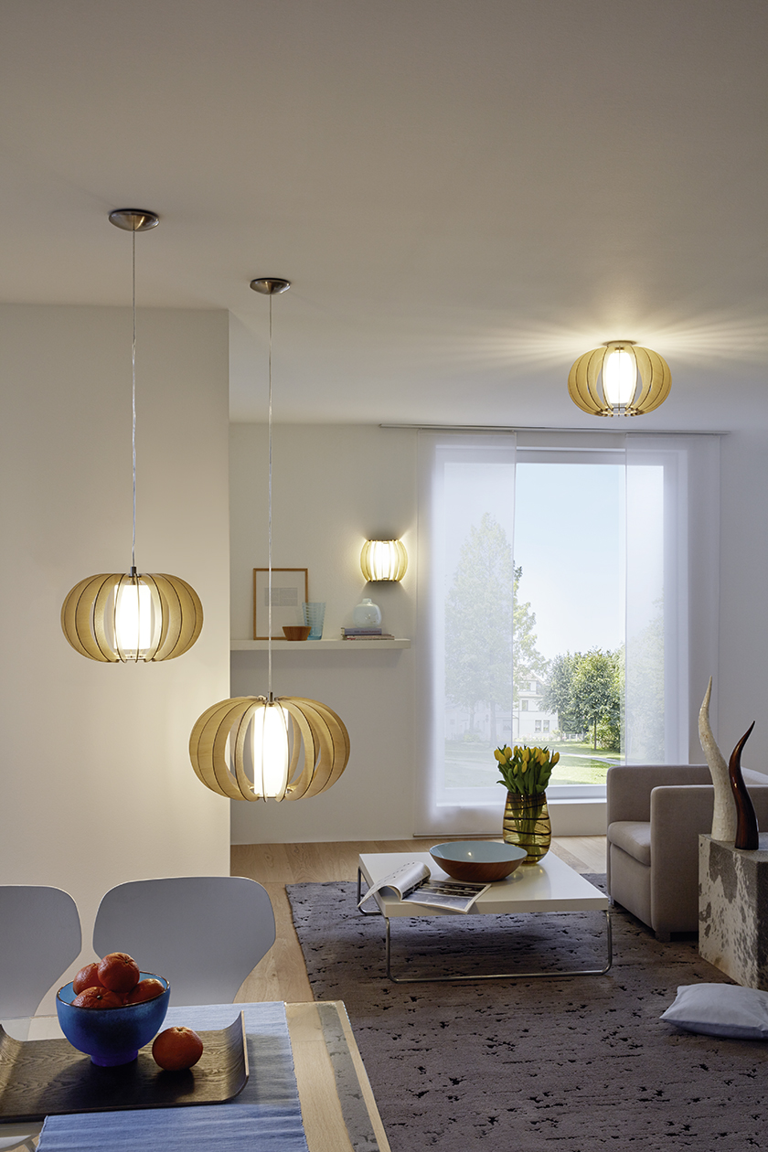 Moderné svietidlá vyrobené z ocele, z dreva vo farbe javora a skla v bielej farbe. Tienidlo tvoria drevené lamely, vo vnútri ktorých je sklenený valec v bielej farbe. Po rozsvietení vytvára zaujímavý efekt, pretože svetlo svieti dole a presvitá aj cez lamely. |