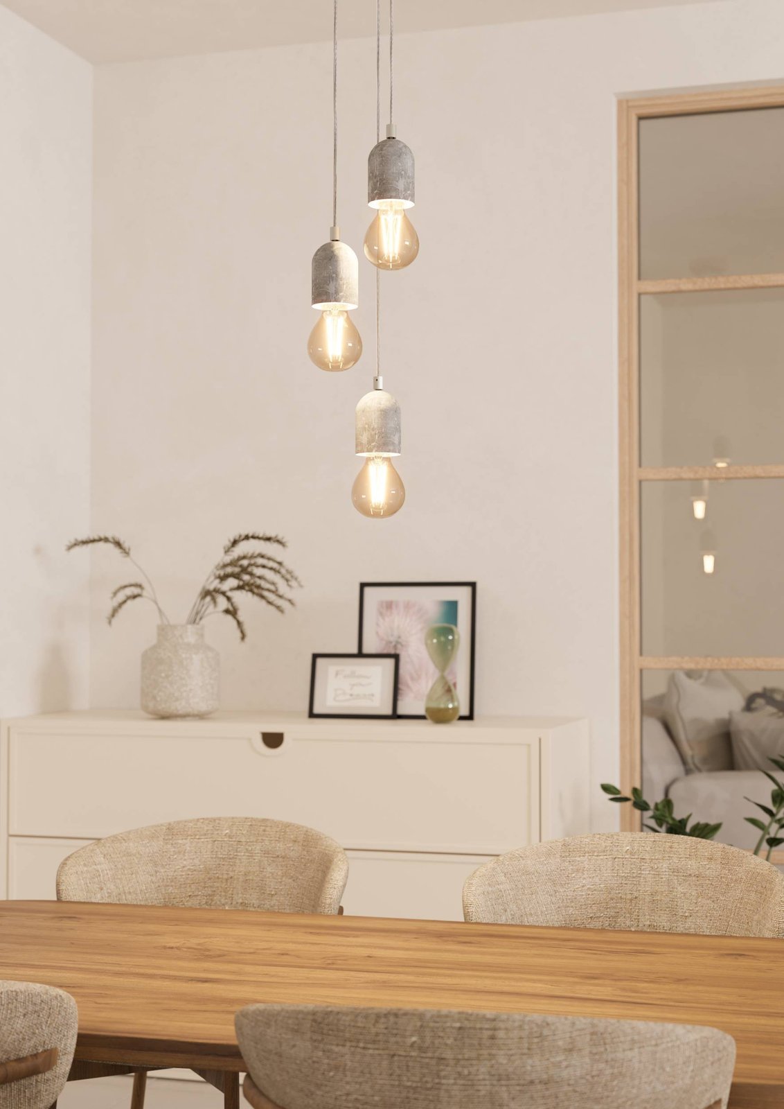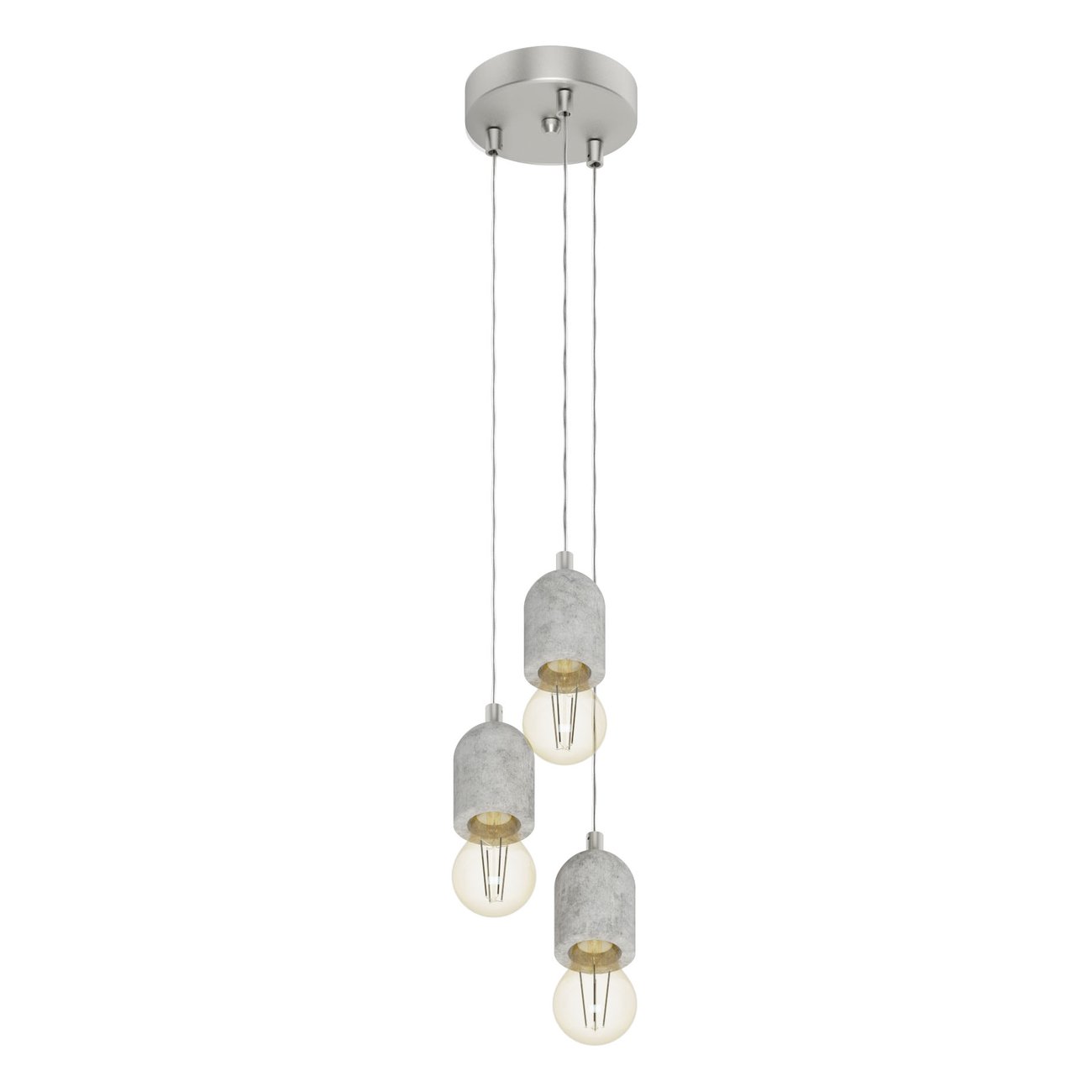 Závesné svietidlá vyrobené z ocele a betónu v šedej farbe. Hodí sa do vintage interiérov. |