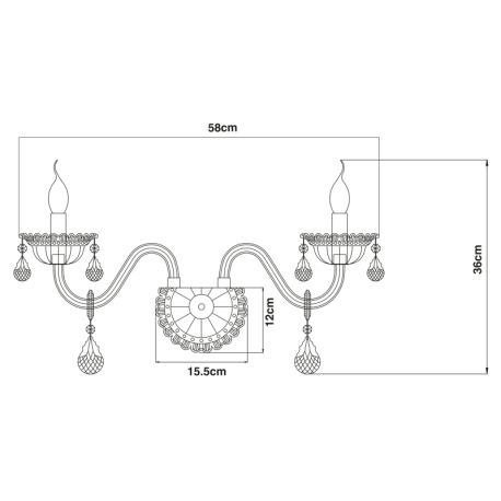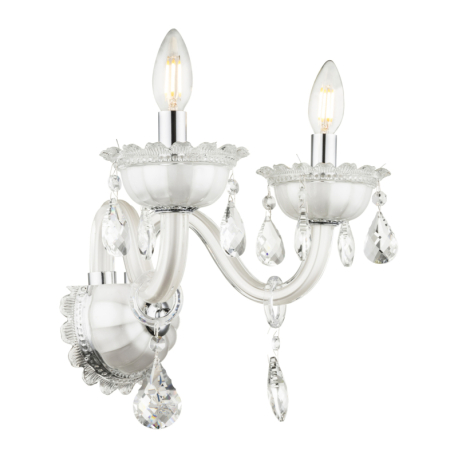 GL-64118-2W  Nástěnné svítidlo, bílé, sklo, K5 křišťály, ?xV: 58x36cm, H:28cm, bez žárovek 2xE14, max. 40W 230V. - Teejay I