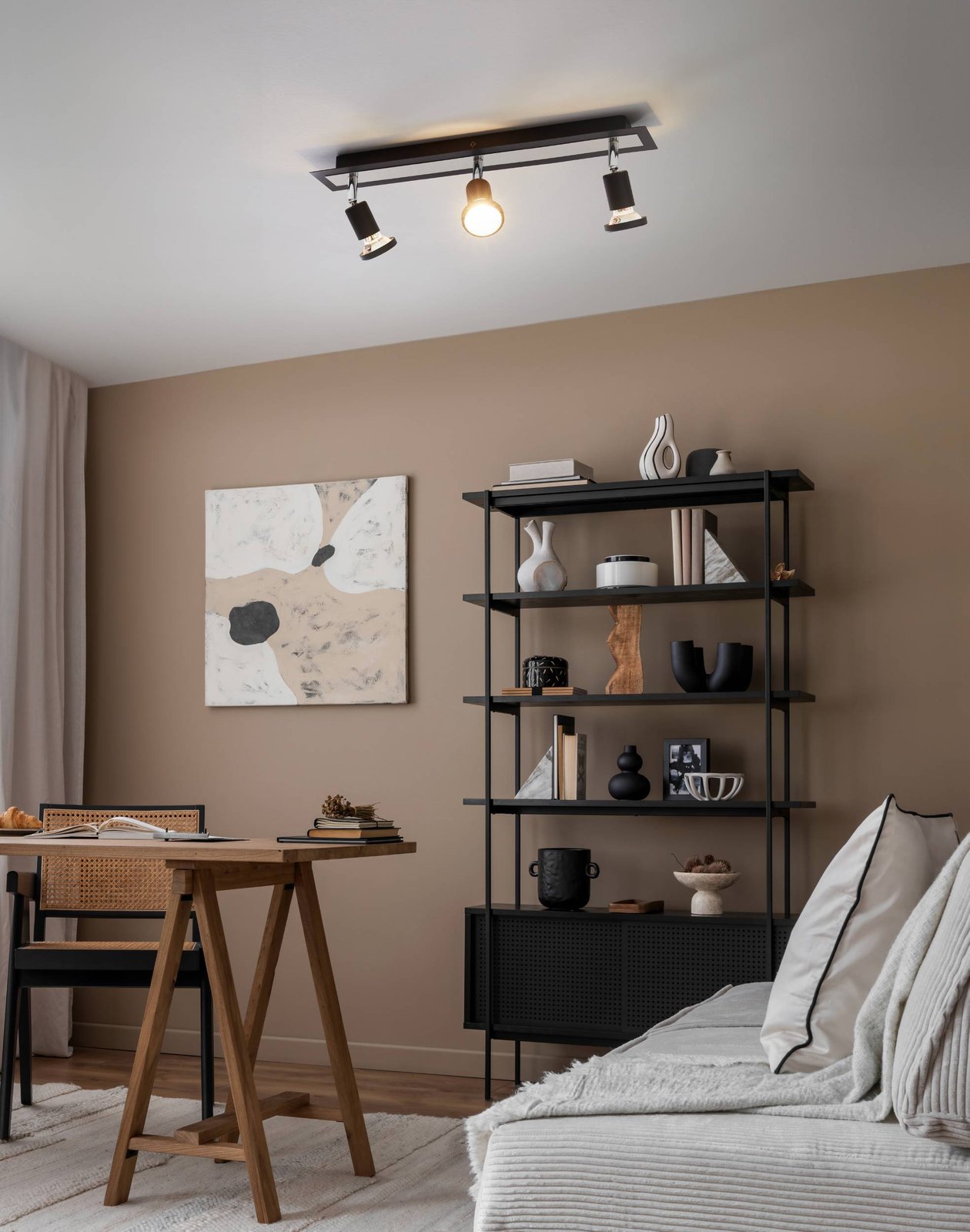 Stropné bodové svietidlá Sarria sú vyrobené z ocele v kombinácii farieb čiernej a chrómu. Sú vhodné do obývacích izieb, spálne, chodieb a predsiení. Výhodou bodových svietidiel je to, že hlavy sa dajú natáčať, takže si ľahšie posvietite tam, kam práve potrebujete. Tieto svietidlá sa dodávajú vrátane žiaroviek so závitom GU10. |