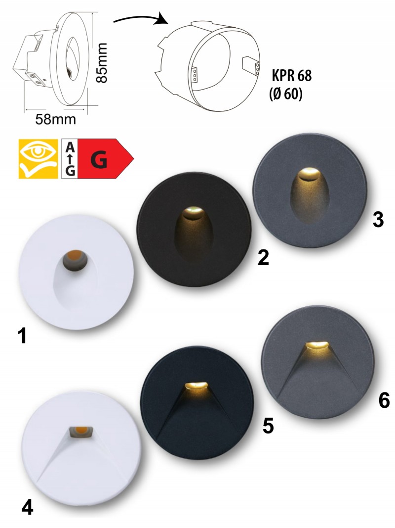 1. GRE-GXLL261 DECENTLY IP44 R1 White 1,5W CCT 40/75lm - Nástěnné vestavné LED svítidlo detail výrobku