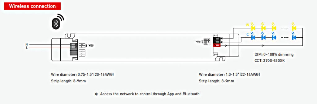 Ovládač Bluetooth 5.0 SIG Mesh je určený na príjem signálu Bluetooth a funguje ako jeho zosilňovač. Umožňuje vám ovládať osvetlenie pomocou nášho super panelu, nástenných ovládačov Bluetooth v rámci vášho domova alebo pomocou brány Bluetooth prostredníctvom telefónu v mobilnej aplikácii Smart Life v interiéri aj exteriéri vášho domova. Bez brány Bluetooth nemôžete svietidlá ovládať na diaľku mimo domu. Je to možné len vtedy, ak máte nainštalovaný superpanel. Predmetný ovládač sa používa ako jednotka Bluetooth 5.0 SIG Mesh na ovládanie vášho osvetlenia CTA LED s nastaviteľnou teplotou bieleho svetla (farby) na základe technológie Bluetooth.