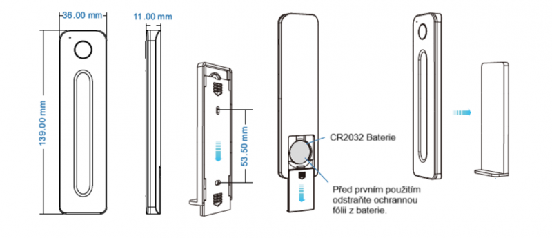 Při instalaci baterií věnujte pozornost kladné a záporné polaritě. Ujistěte se, že jsou baterie vloženy správně podle polarity (+ a -). Před prvním použitím odstraňte ochrannou fólii z baterie.