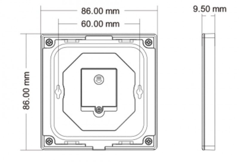 Dotykový čtyřzónový dálkový RF ovladač na stěnu pro RGB a RGBW LED pásky černý.