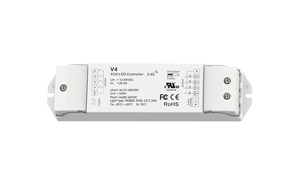 Univerzální přijímač V4 pro Single color, CTA, RGB, RGBW 4x5A - Ovládače a vypínače