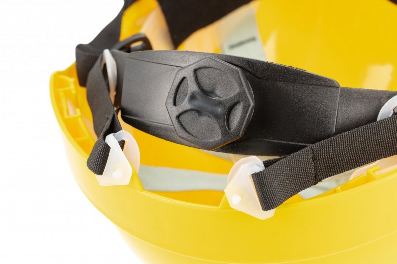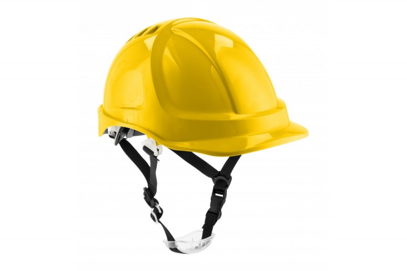 Ochranná prilba z materiálu ABS s vetracími otvormi a otvormi pre tlmiče. Bočné držiaky slúžia na pripevnenie dodatočnej ochrany tváre, očí a uší. Škrupina zostáva odolná voči nárazom pri nízkych teplotách, má vysokú tvrdosť a odolnosť proti poškriabaniu. Šesťbodové polstrovanie z vysoko odolného polyesterového popruhu, nepáli ako plastové polstrovanie. Nastavovacie koliesko na zadnej strane prilby, vyrobené z nylonu, zabezpečuje optimálne prispôsobenie pre všetky veľkosti hlavy. Prilba je vybavená 4-bodovým remienkom na bradu. Ideálna do podmienok vyžadujúcich účinnú ochranu, optimálne vetranie a maximálnu viditeľnosť. Vyrobená v súlade s normou EN 397. Určená na profesionálne použitie.