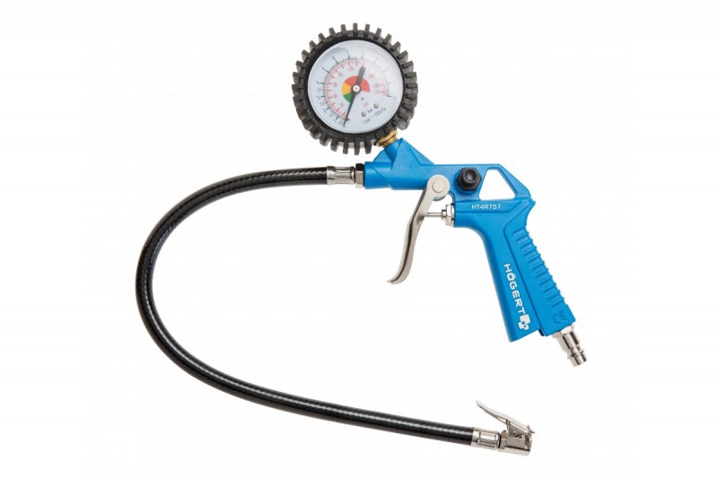 Nafukovacia pištoľ s manometrom na univerzálne použitie. Užitočná v domácnosti, dielni a v garážach.