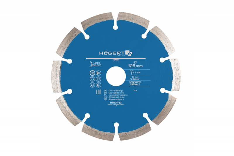 Laserom zvárané diamantové kotúče pre uhlové brúsky a rezacie stroje. Určené na suchú prevádzku. Na rezanie stavebných materiálov, ako sú asfalt, tehly, skrinky, železobetón, dlažobné kocky, keramické obklady atď.