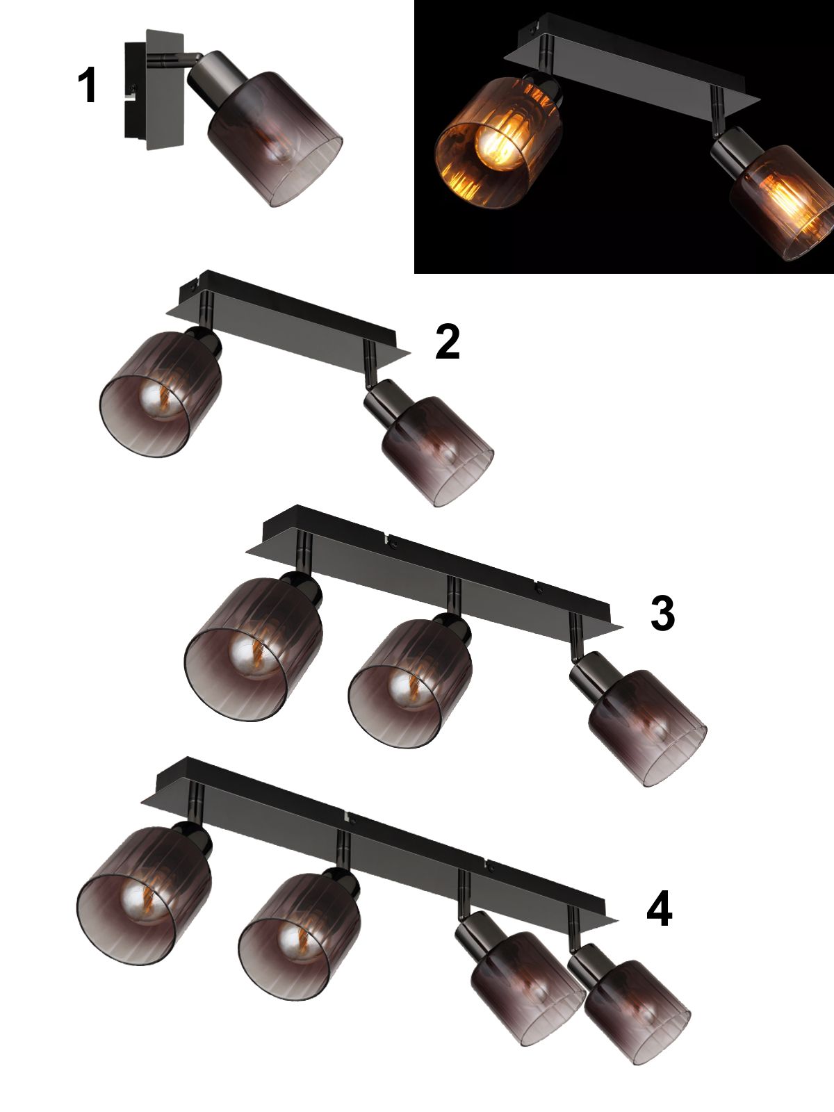 4. GL-54313-4 Stropní svítidlo, kov černý chrom, sklo měděné barvy a průhledné, Dx?xV:550x80x180mm, bez žárovek 4xE14, max. 40W 230V detail výrobku