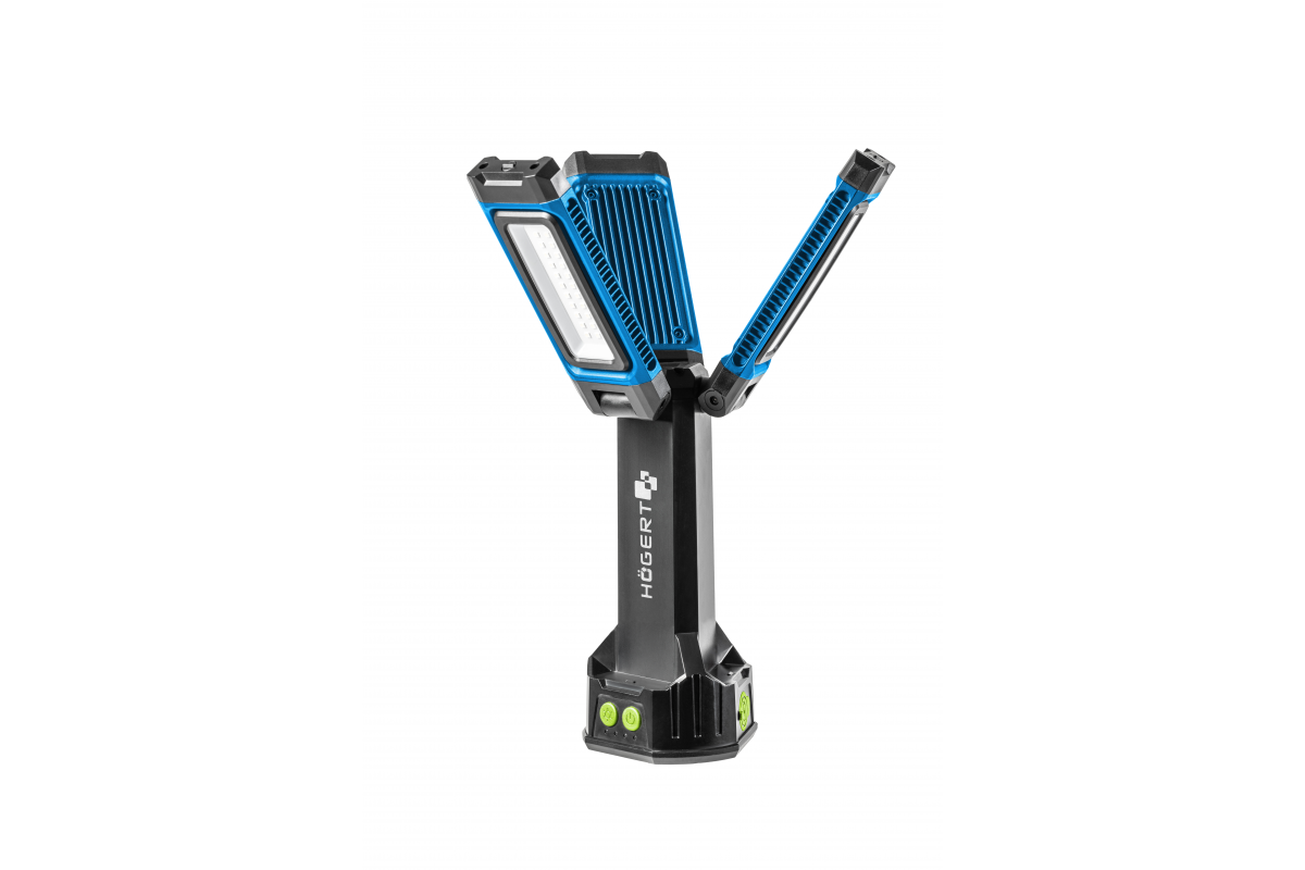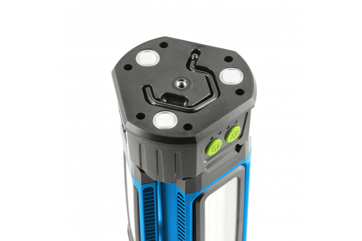 Batériový reflektor so statívom. Všesmerové pracovné svetlo s veľmi dobrou kvalitou vyžarovaného svetla a vysokou odolnosťou a životnosťou. Vďaka 360° uhlu svietenia a individuálnemu nastaveniu uhla každého z 3 reflektorov ponúka veľké možnosti prispôsobenia aktuálnym potrebám a podmienkam. Vysokokvalitné LED diódy svietia bielym svetlom, neoslňujú a poskytujú rozsiahle osvetlenie. Vhodné do najnáročnejších podmienok - na stavbu, dokončovacie práce, renováciu, do dielne a na vonkajšie práce. Svietidlo je napájané výkonným akumulátorom, ktorý umožňuje nepretržitú prevádzku až 7 hodín. V prípade potreby ju možno odňať zo statívu a pripevniť kdekoľvek vďaka silným magnetom alebo sklopnému háčiku na zavesenie. Objímka so závitom 1/4" umožňuje montáž reflektora na statív. Kryt s vysokým krytím IP54 zaručuje úplnú odolnosť proti vnikaniu prachu a zaručuje bezproblémovú prevádzku v najprašnejšom prostredí. Puzdro chráni aj pred striekajúcou vodou z akéhokoľvek smeru, takže ho možno bezpečne používať aj v silnom daždi. Reflektor môže napájať iné zariadenia prostredníctvom zásuvky USB-C a v prípade potreby fungovať ako powerbanka. Statív je vyrobený z hliníka, čo zaručuje jeho nízku hmotnosť a odolnosť voči korózii a mechanickému poškodeniu, čím sa zabezpečí jeho dlhá životnosť. Skladacia konštrukcia umožňuje jeho zloženie do pohodlnej a kompaktnej veľkosti na jednoduchú prepravu. Súpravu možno zbaliť do praktickej prenosnej tašky.