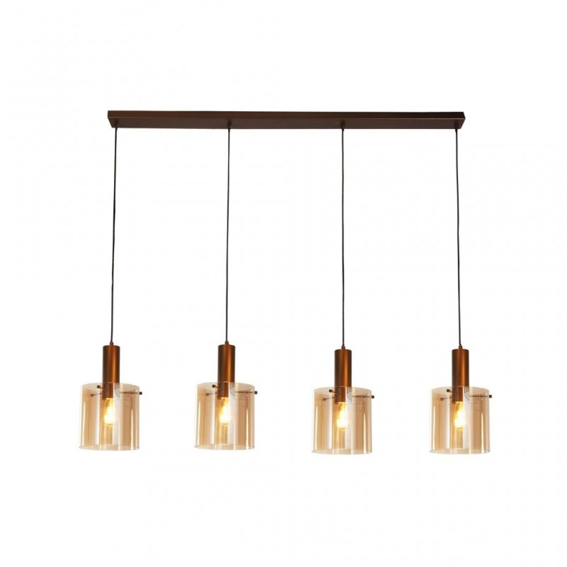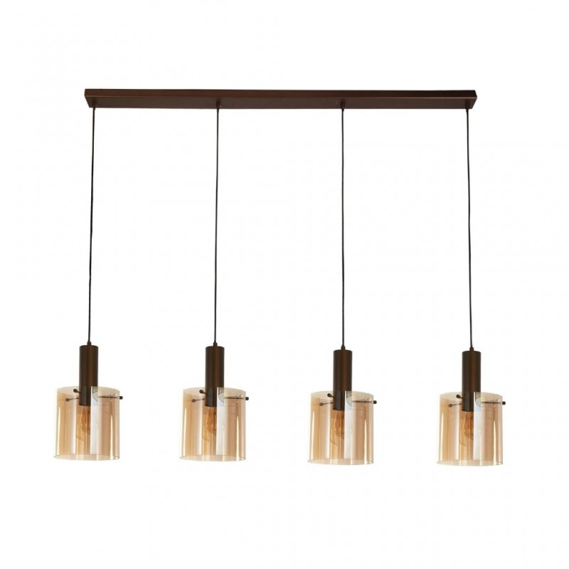 Svietidlo závesného osvetlenia Searchlight kávovej farby, povrchová úprava matný práškový hodváb, použitý materiál je mäkká oceľ a sklo. Rozmery v cm: celková výška: 150, výška: 35, šírka: 22, dĺžka: 142, výčnelok: 0. Zdroj svetla s päticou E27, potrebné sú 4 žiarovky, zdroj svetla nie je súčasťou balenia, výrobcom odporúčaný typ žiarovky je klasická žiarovka pre max. 60 W. |