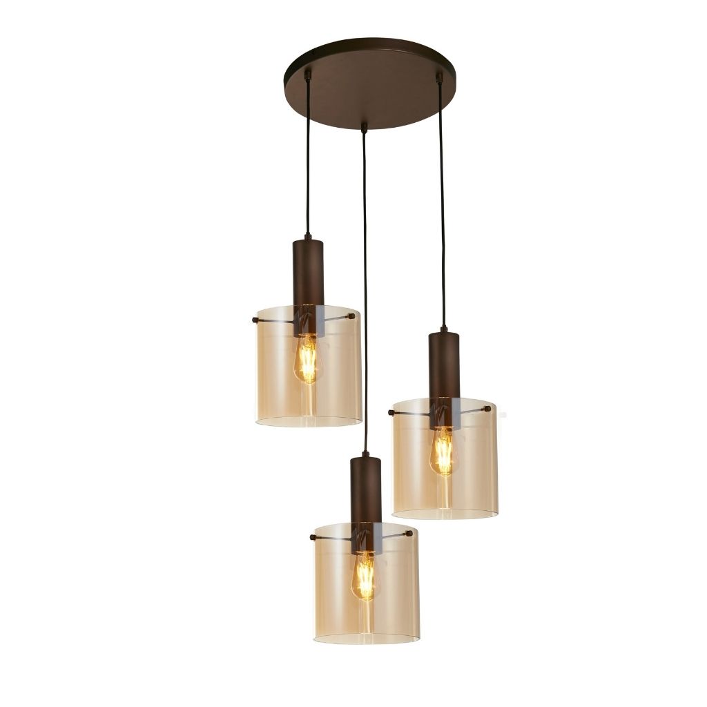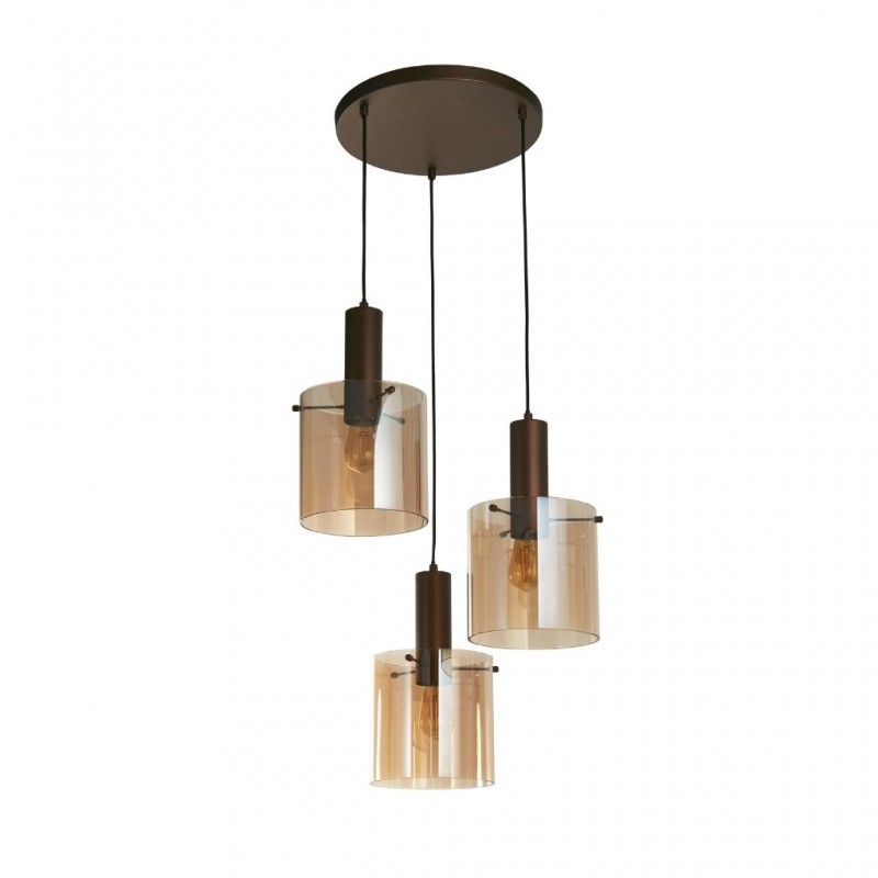 Svietidlo závesného osvetlenia Searchlight kávovej farby, povrchová úprava matné pokovovanie, použitý materiál je mäkká oceľ a sklo. Rozmery v cm: celková výška: 150, výška: 35, šírka: 47, dĺžka: 47, výčnelok: 0. Zdroj svetla s päticou E27, potrebné sú 3 žiarovky, zdroj svetla nie je súčasťou balenia, výrobcom odporúčaný typ žiarovky je klasická žiarovka pre max. 60 W. |