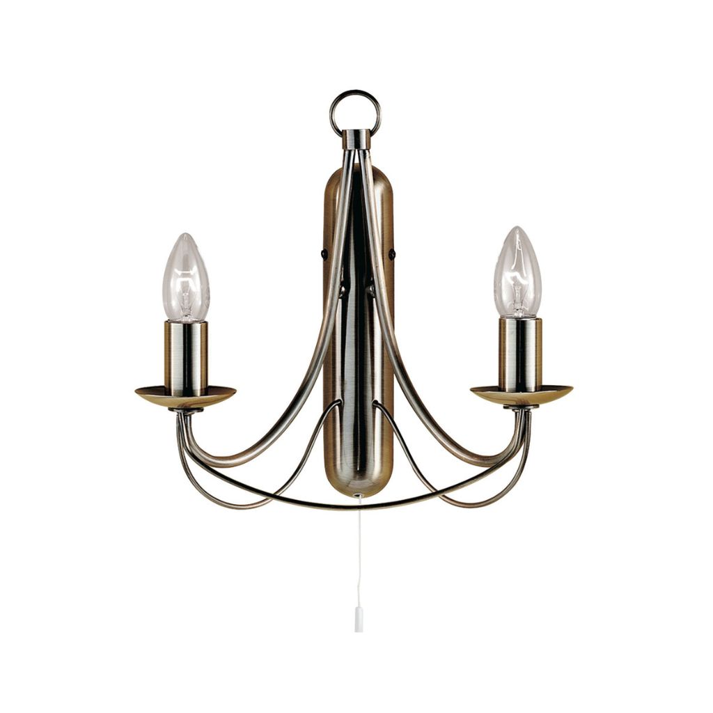 Searchlight nástenné svietidlo starožitnej mosadznej farby, povrchová úprava pokovovaním, použitý materiál je mäkká oceľ. Rozmery v cm: celková výška: 31, výška: 31, šírka: 31, dĺžka: 0, výčnelok: 14. Svetelný zdroj: pätica E14, potrebné sú 2 žiarovky, svetelný zdroj nie je súčasťou balenia, výrobcom odporúčaný typ žiarovky je sviečka s maximálnym výkonom 60 W. |