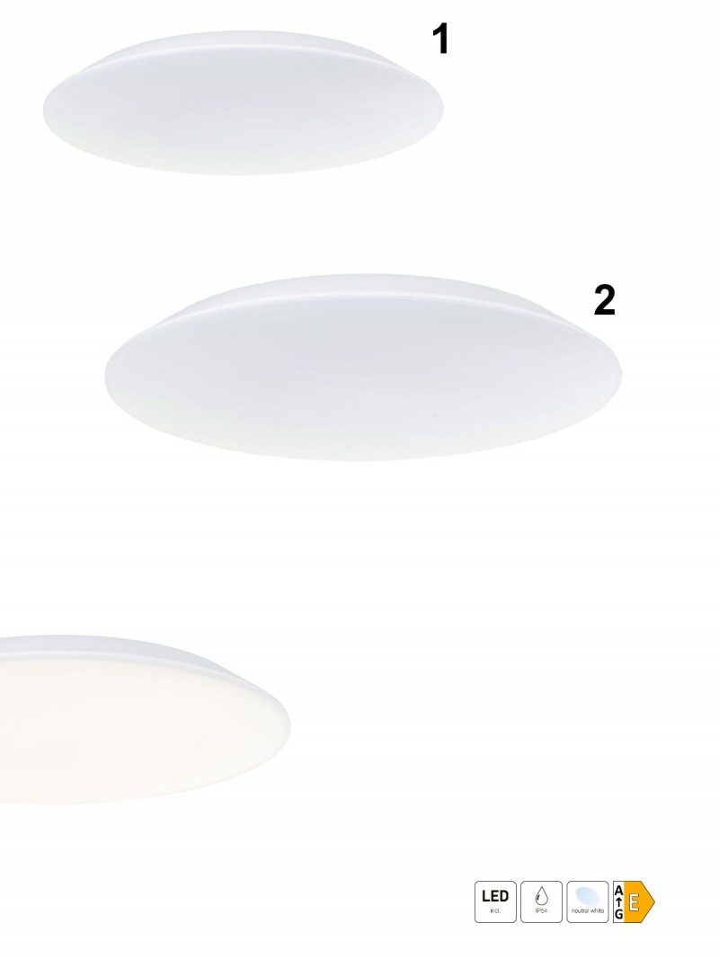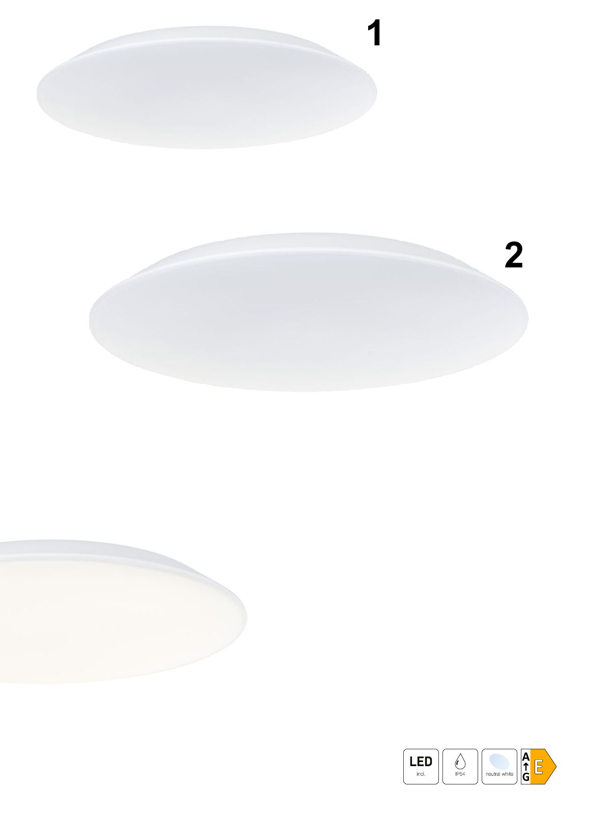 Jednoduché, elegantné stropné LED svietidlo vyrobené z plastu. Vďaka IP54 ochrane je vhodné aj do kúpeľní, WC a pod. Svieti neutrálnou bielou farbou. |