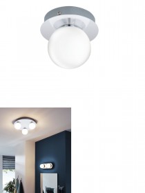 Stropné LED svietidlo vhodné aj do vlhkých priestorov ako je kúpeľňa alebo WC vďaka ochrane IP44. Je vyrobené z ocele a matného opálového skla. Svieti teplou bielou farbou. Nie je možné ho stmievať. |