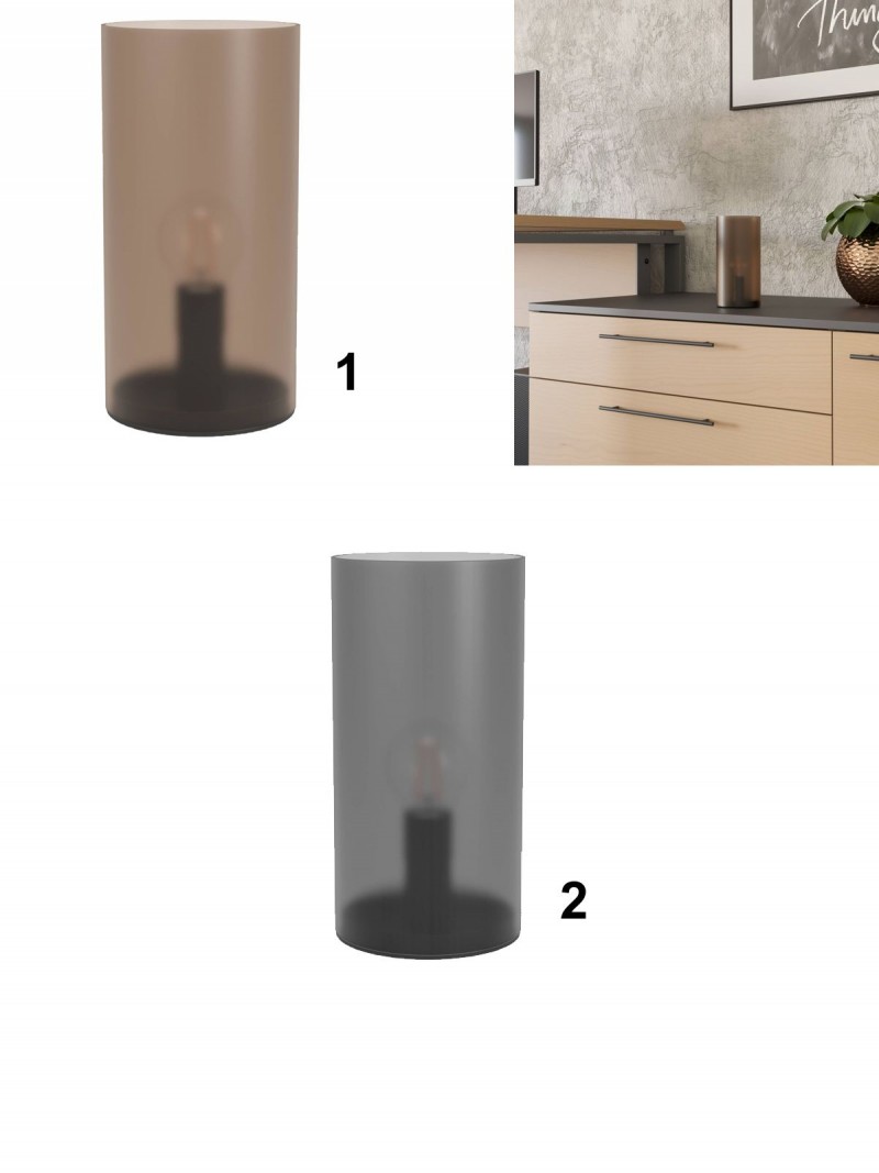 Jednoduchá dekoratívna lampička na komodu alebo nočný stolík. Je vyrobená zo skla a plastu. Závit E14. S vypínačom na prívodnom kábli. |