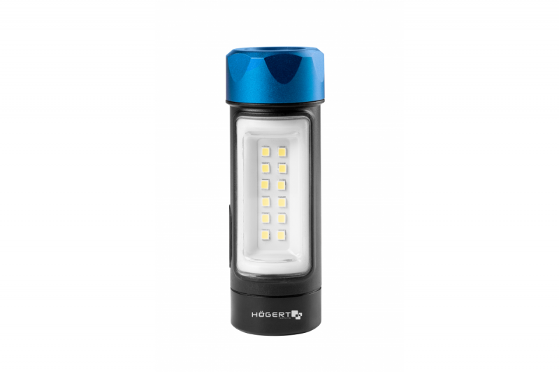 | Kompaktní reflektor s LED svítilnou se dvěma různými zdroji světla; bočním a čelním. Reflektor na stativu HT1E437 lze otáčet v libovolném směru, naklápět do požadovaného úhlu a instalovat v pohodlné výšce pro danou činnost. Díky silnému magnetu lze displej připevnit na libovolné kovové místo a uvolnit si tak ruce pro práci. Nominální světelný výkon je 500 lm. Zařízení má 6 provozních režimů: 1. strana SMD silná 500 lm. 2. strana SMD medium 250 lm. 3. boční SMD slabé 120 lm. 4. Čelní světlomet s výkonem 300 lm. 5. Střední světlomet 150 lm. 6. Slabý světlomet 100 lm. Zařízení je vodotěsné podle normy IPX3. Vestavěná dobíjecí baterie s napětím 3,7 V a kapacitou 2000 mAh zajišťuje dlouhou dobu svícení reflektoru, a to až 9 hodin. Svítilnu lze pohodlně dobíjet pomocí univerzálního kabelu USB-C, který lze připojit například k notebooku, nabíječce nebo telefonu. Indikátor LED ukazuje stav nabití baterie.Režimy osvětlení/světelný výkon/doba provozu/délka paprsku: 1. boční SMD/ 500 lm/ 2,5 h/ 27 m. 2. boční SMD/ 250 lm/ 5 h/ 19 m. 3. boční SMD/ 120 lm/ 13 h/ 13 m. 4. čelová svítilna/ 300 lm/ 1,5 h/ 100 m. 5. čelová svítilna/ 150 lm/ 2 h/ 75 m. 6. čelová svítilna/ 100 lm/ 9 h/ 53 m. Montážní zásuvka: 1/4". Kapacita baterie: 3,7 V, 2000 mAh. Doba nabíjení: 4 h. Nabíjení: kabel USB-C, který je součástí sady. | |