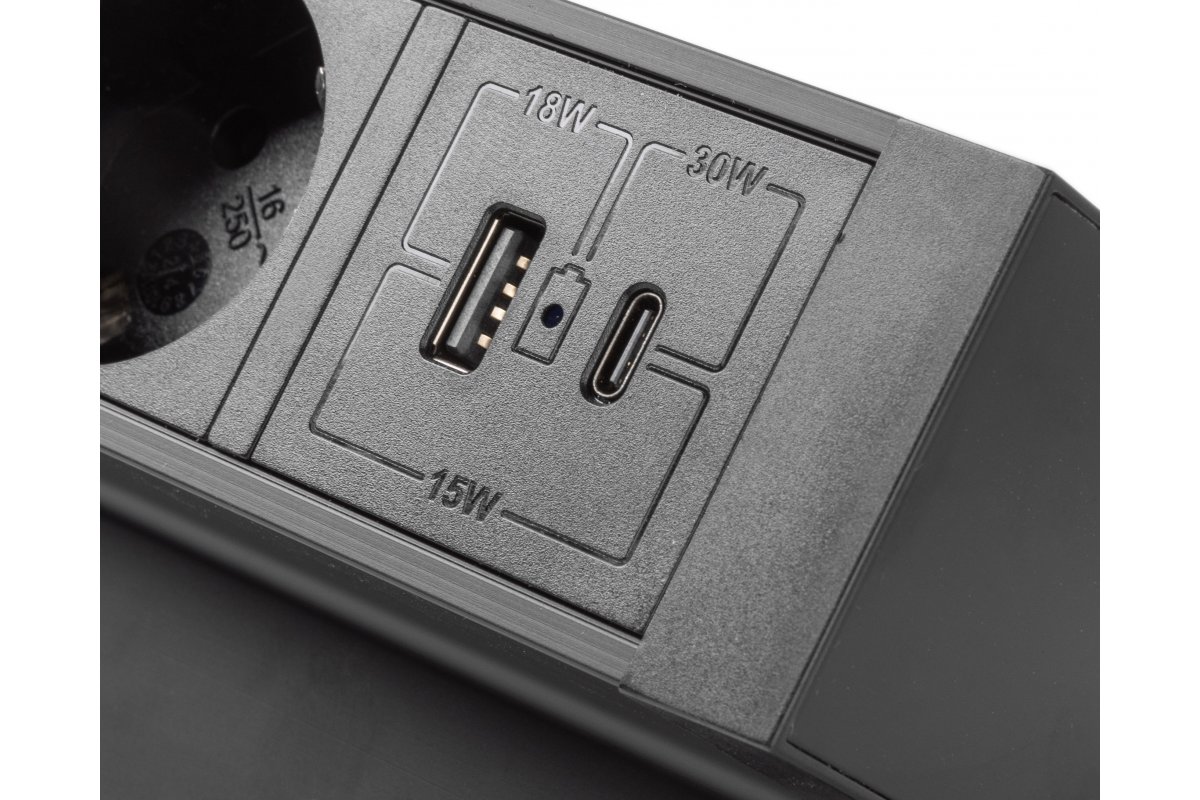 Nábytková zásuvka BASCO je praktickým řešením pro stoly a psací stoly doma i v práci. Usnadňuje využití prostoru a jeho univerzální design se hodí do mnoha uspořádání. Zásuvka se montuje na okraj desky stolu o tloušťce 5 až 36 mm – bez nutnosti vrtání. Je vybaven třemi zásuvkami Schuko a porty USB A a C, což vám umožňuje připojit různá zařízení současně. Má kabel o délce 1,5 m a je k dispozici v černé barvě, díky čemuž diskrétně splyne s většinou pracovních prostor. - Zásuvka umístěná na okraji desky stolu o tloušťce 5 mm až 50 mm. - Pro instalaci není nutné vrtání. - Má 3x zásuvku schuko a zásuvky USB A + C. - Délka kabelu: 1,5 m. - Barva: černá. |