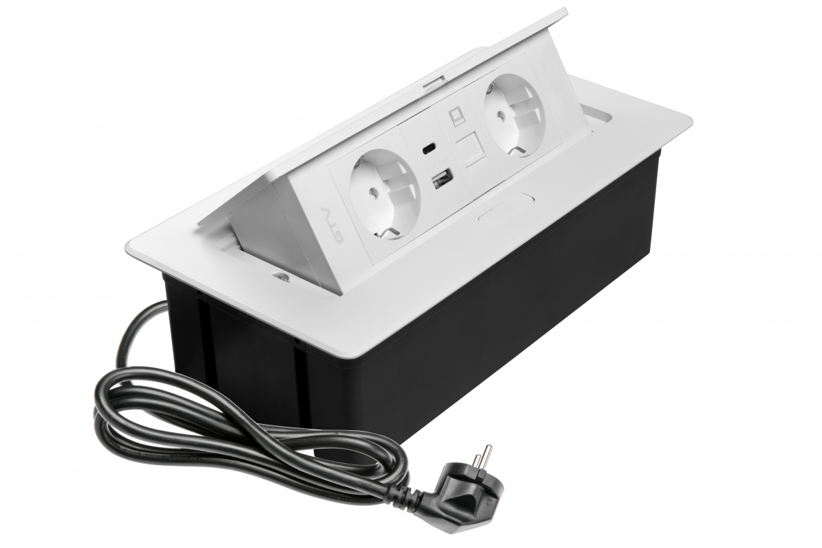 MULTISOFT Nábytková Zásuvka 2x Schuko, USB A+C, RJ45, napájecí kabel se zástrčkou, bílá - Doplnkový sortiment